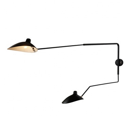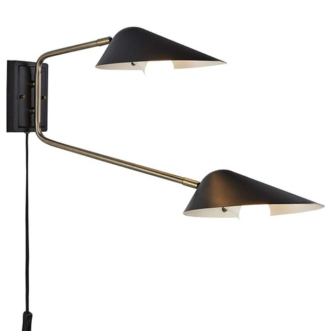 ไฟติดผนังปรับได้สองชั้นติดผนังโคมไฟเชิงเทียนติดผนังแกว่งรูปหมวกโลหะแบบทันสมัยพร้อมแขนหมุน2อัน