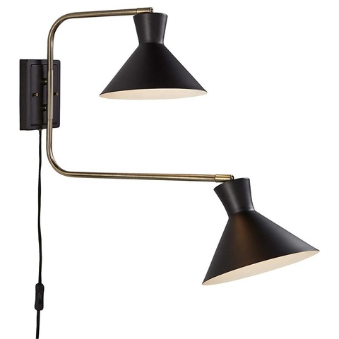 JLW-420อุตสาหกรรมสีดำ2แสงหมุนแขนยาวขยายหัวเสียบในโคมไฟแขวนผนัง