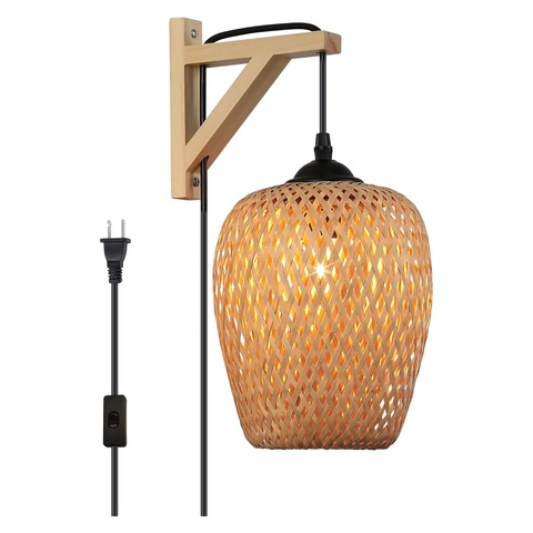 BW02 ปลั๊กไฟผนังไม้ไผ่ปรับแขวนโคมไฟติดผนังไม้โคมไฟชนบททอรังนกโคมไฟหวาย